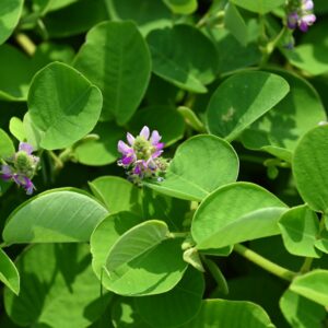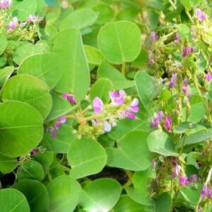- Mô tả: Cây thảo, mọc bò, sau đứng thẳng, cao 0.3 – 0.5 m. Ngọn non dẹt, có khía và lông tơ trắng. Lá mọc so le, gồm 1 (đa số) hoặc 3 lá chét hình tròn, dài 1.5 – 3.4 cm, gốc bằng hoặc hơi hình tim, đầu tù hoặc hơi lõm, mặt trên màu lục xám nhạt, có gân rất rõ, mặt dưới phủ lông màu trắng bạc, mềm như nhung; lá kèm có lông, có khía; cuống lá dài 1-2 cm, có lông. Cụm hoa mọc ở kẽ lá hoặc đầu ngọn thân thành chùm ngắn hơn lá; lá bắc sớm rụng; hoa màu hồng; đài 4 răng đều, có lông ngắn, tràng có cánh cờ hình bầu dục, các cánh bên thuôn, cánh thìa cong có tai; nhị 2 bó; bầu hơi có lông. Quả đầu hơi cong, hạt có lông.Mùa hoa quả: tháng 3 – 5